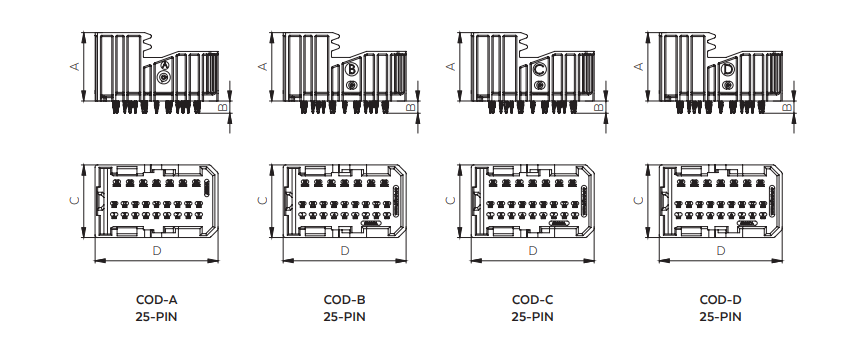 | 25.9 | 4.05 | 27.5 | 46.5 | COD-A | 25-pin | 403130ABKA |