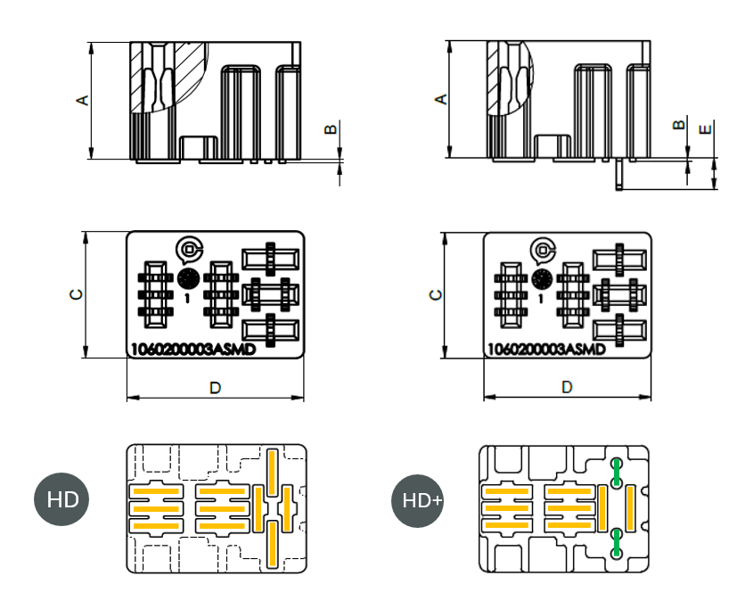 | 15.5 | 0.5 | 16.1 | 21.65 | 4.25 | Micro | HD+ | 200161A |